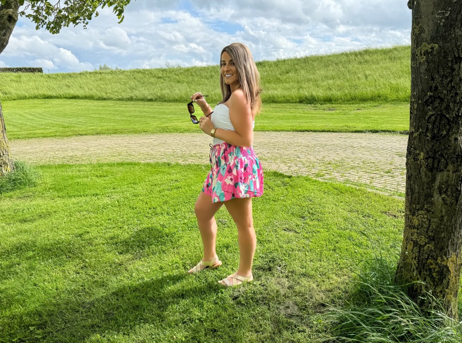 Deze skort is het meest comfy van de 3 door het elastische smokwerk. Daardoor zit hij echt heerlijk! De felle print is ook helemaal mijn ding en deze staat net als de andere 2 ook weer leuk in combinatie met de witte strapless top. Ik zie mezelf al helemaal lopen hoor op Gran Canaria, in dit vrolijke gekleurde skortje. Wat trouwens ook fijn is om te weten is dat alle skorts een extra binnen broekje hebben waardoor ze ook niet doorschijnen. Ideaal!