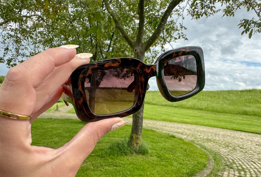 En om het af te maken natuurlijk ook een mooie zonnebril! Dit is toch wel het kersje op de taart bij een zomerse outfit. Ik vind dit montuur echt super leuk. Een keer wat anders dan waar ik normaal voor zou kiezen dus zoiets had ik ook nog niet. Door de neutrale kleur past hij ook bij iedere outfit. Lekker makkelijk om mee te nemen op vakantie dus! Bij de zonnebril krijg je een roze Loavies hoesje meegeleverd die je tevens kunt gebruiken als poetsdoekje. Twee vliegen in één klap!